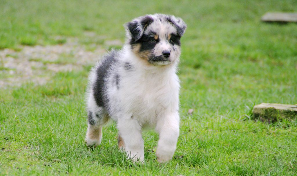 Toa, mâle bleu merle , queue courte . Un chiot demande beaucoup de patience, de temps, de la présence, il faut faire TOUTE leur éducation : la propreté ne sera pas acquise à 100% et des bêtises sont à prévoir...donc bien réfléchir avant de me contacter Mes chiots pour compagnie partiront tous stérilisés donc les éleveurs qui se font passer pour des particuliers , ce n'est pas la peine de me contacter !
