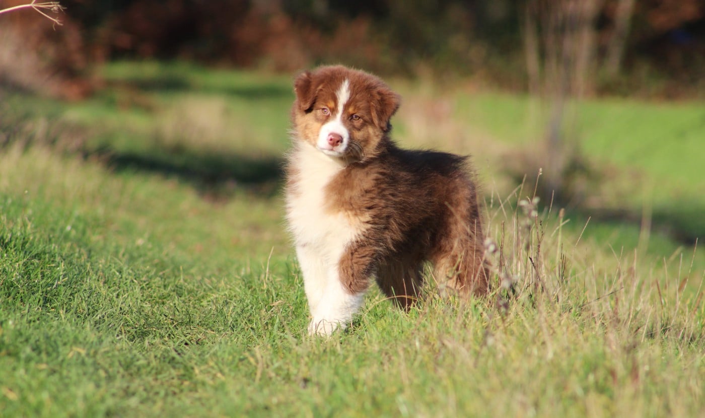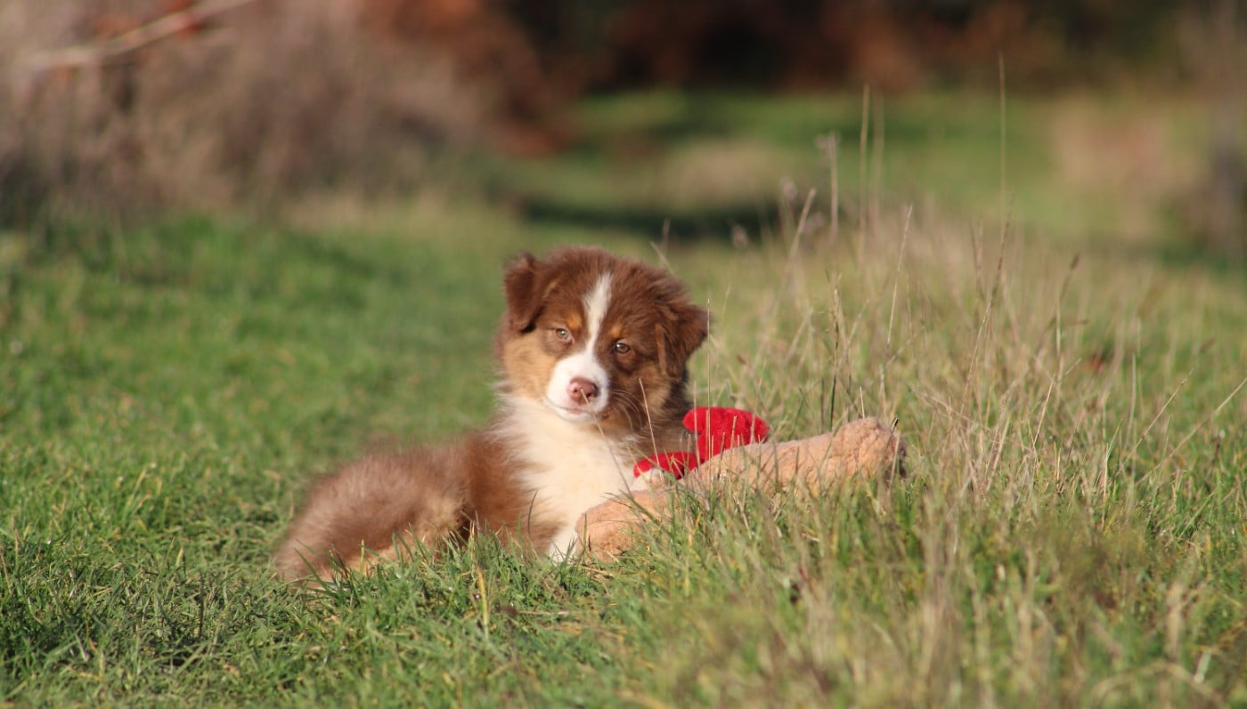 Love , femelle rouge merle , queue courte